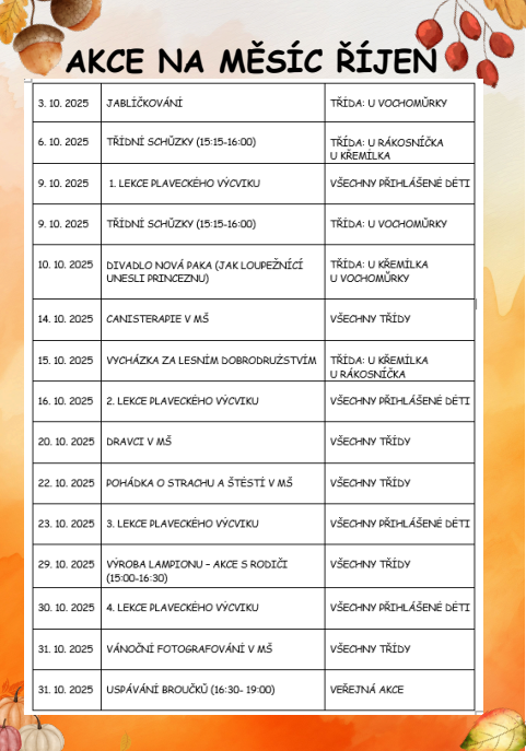 Rodiče, akce jsou předběžné. Může se změnit termín.