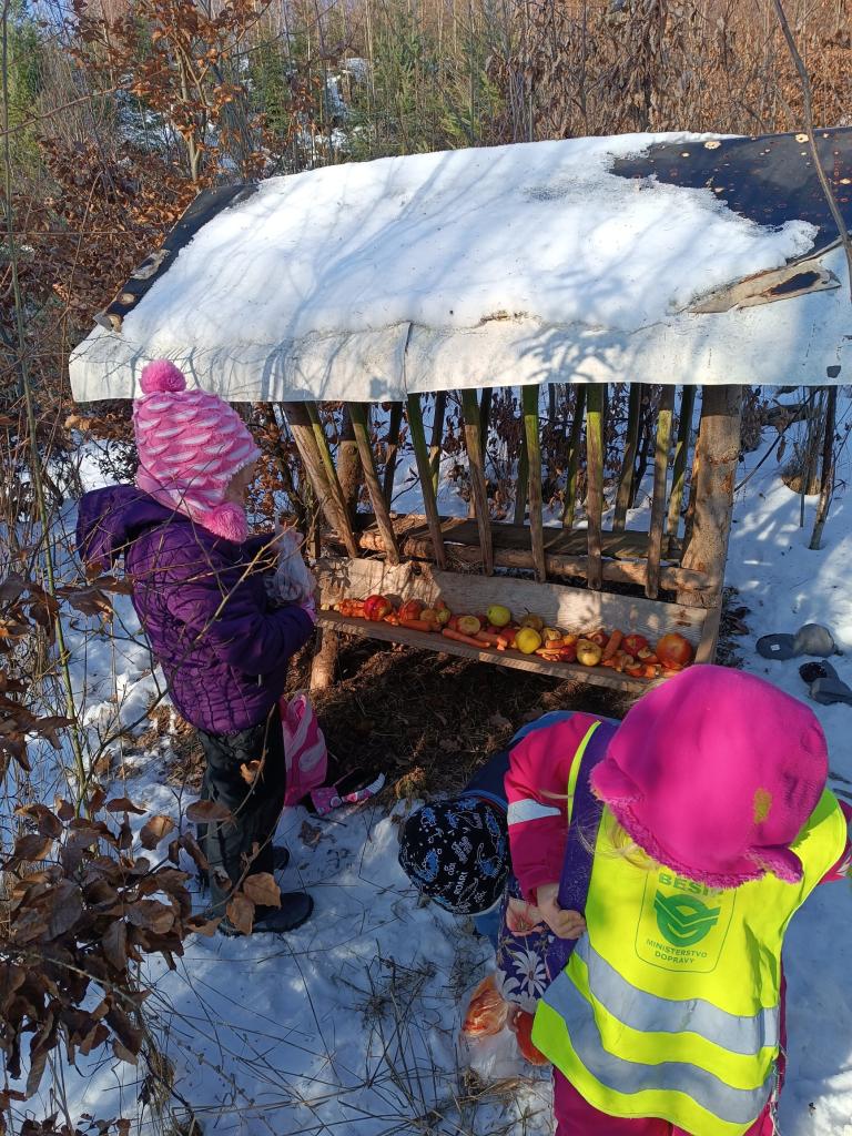 Krásné slunečně mrazivé dopoledne využily děti od Vochomůrky a vydaly se potěšit lesní zvířátka.