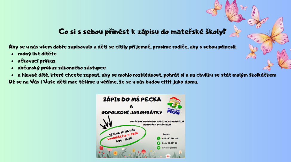 Informace k zápisu do MŠ 16. 3. 2026 od 8:00 - 16:00 hod najdete na plakátu.
